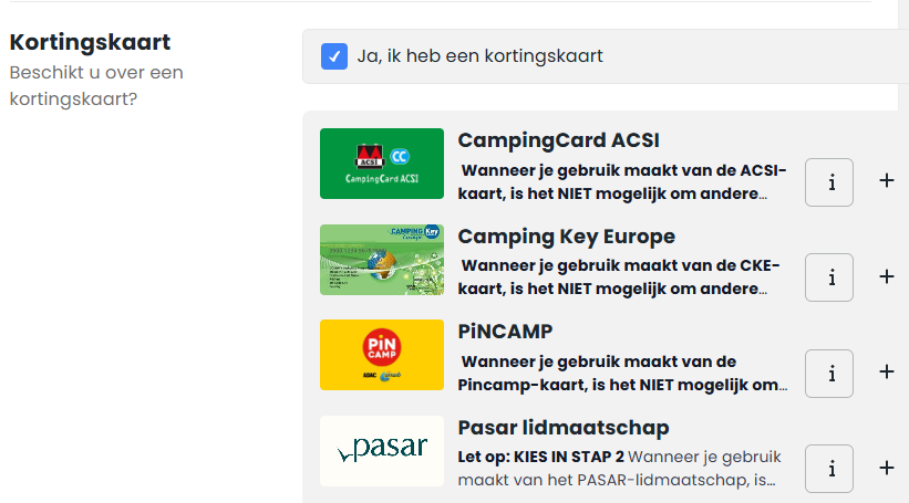 Yes, you can book with the following discount cards: Pasar, Camping Key Europe, PiNCAMP and CampingCard ACSI.